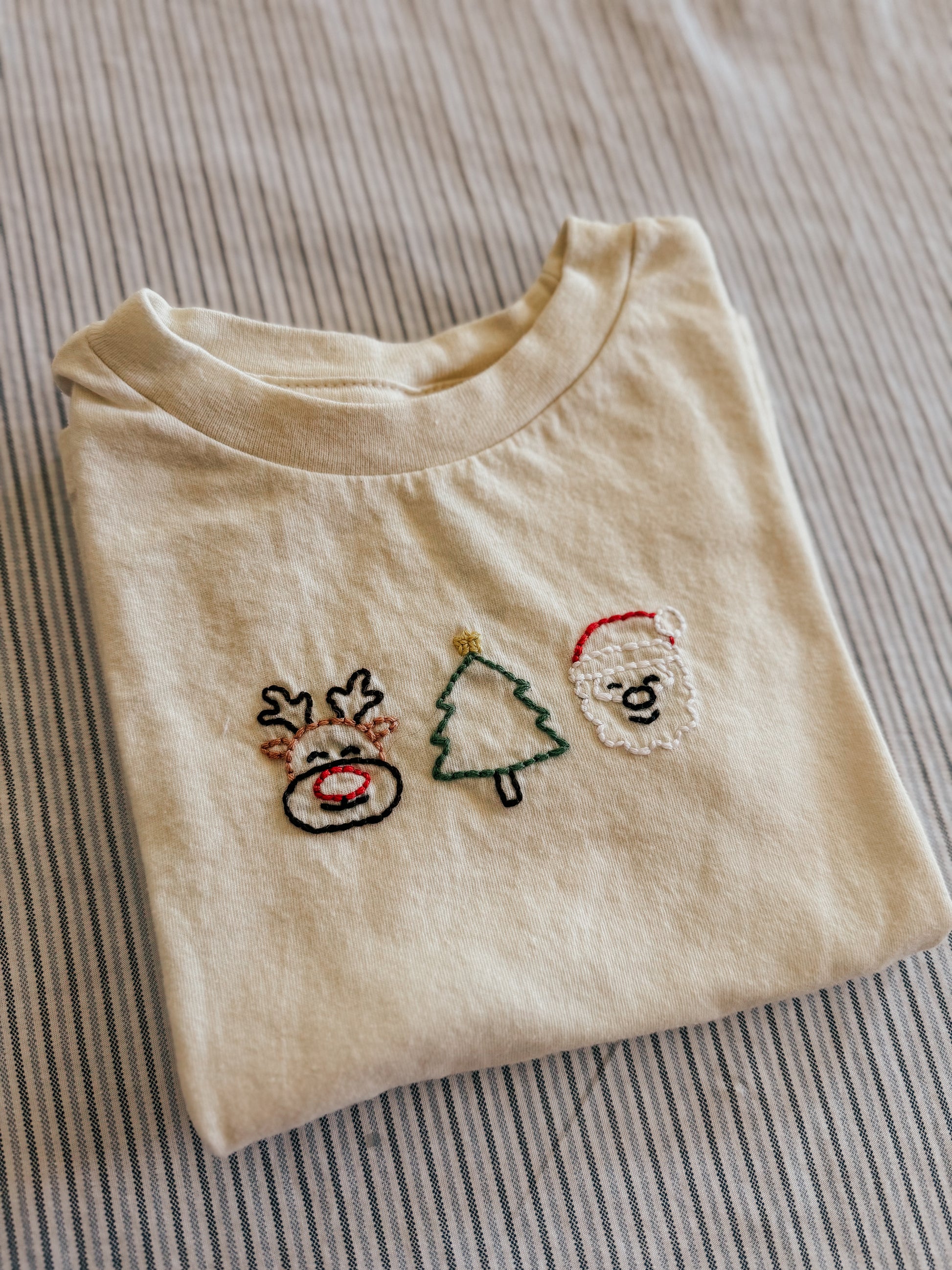 Each shirt is thoughtfully embroidered by hand, making every piece one-of-a-kind. Made for playtime, storytime, and all the Christmas chaos in between — because we believe in clothing that’s as special as the memories you’re making.